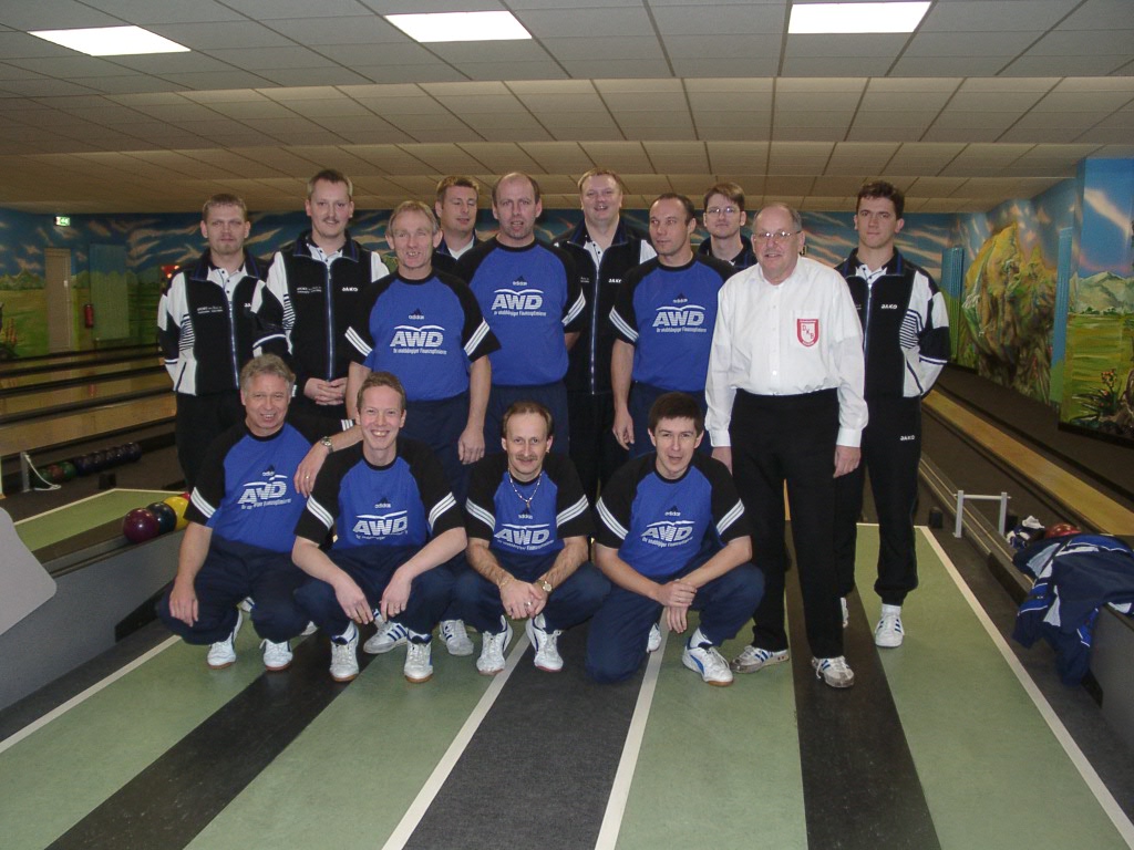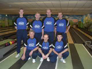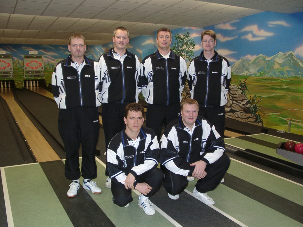 | Vorschaubild Die Gastgeber aus Münster hinten von links: Stefan Rüsenberg, Gerhad Schultz Joachim Brügge, Thomas Klein, vorne von links: Werner Schmedt, Rainer Krefter, Udo Stammschoer |